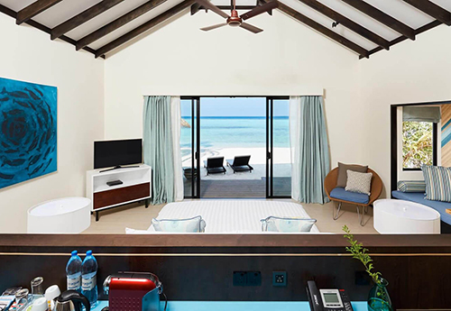 The sun gently rises, daylight flickers through, you draw your curtains, an incredible backdrop of sapphire blue unfolds in front of you. You walk out to your terrace, barefoot, sea-gaze, recline on your lounger, do absolutely nothing, take in the Maldivian rays. You head out and explore, nap in the afternoon, watch TV, go online, post and share. You make your way to the back of your villa, soak in your enclosed plunge pool before dinner, in tranquillity and privacy, with a magical spectrum of colours as day transforms to night, sharing that incredible moment when the first stars come out to play.