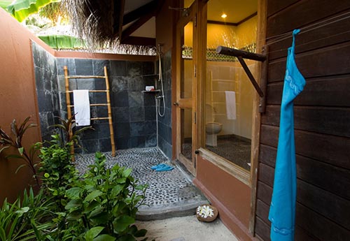 The Deluxe Beach Villa are located along the wide beaches in the middle of the island. Facing the turquoise lagoon, these villas boast oversized wooden decks with sunloungers, sun umbrella and daybed. The bedroom features a king-sized four-poster bed and a built-in sunlit daybed. The bathroom has a bath, twin vanities, shower, and a expansive outdoor area with a rainfall shower, sala bed for two, and an inviting whirlpool (hot tub) on an elevated deck. The added luxury of an espresso machine with complimentary refill is included from this villa category upwards.