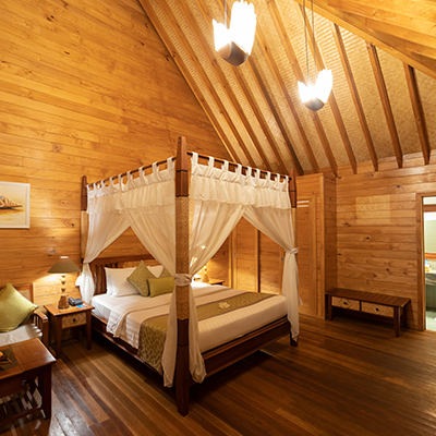 TheGarden Villas with their neatly trimmed hedges and flower gardens are designed forthose who wantto while away their vacation in the elegance of a carefully tended garden environment. Located in the middle ofthe island, nearthe swimming pool facilities,these wooden chalets are elegantly furnished and come with their own private patio.