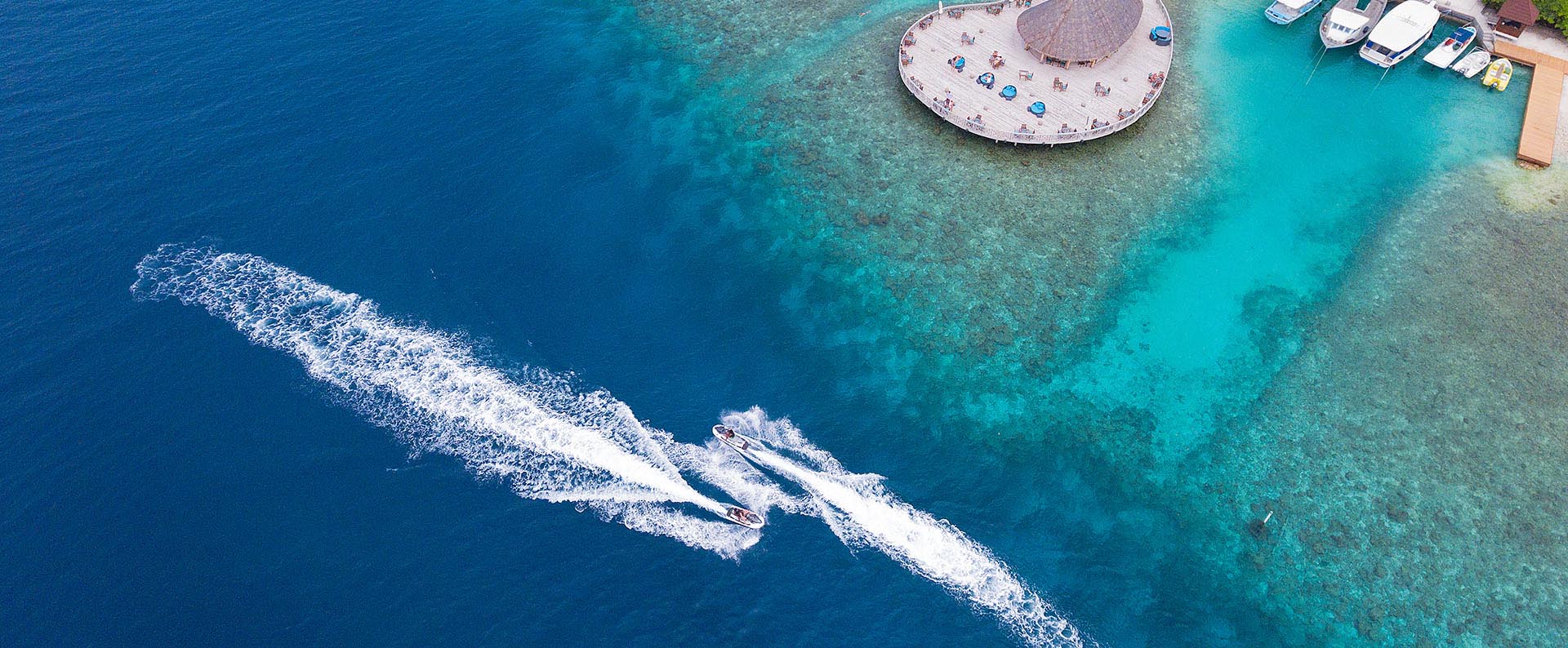 The Deluxe Rooms at Bandos are spacious and inviting with all amenities available. They have both living and bedroom areas, and are topped off by uniquely thatched high ceilings and parquet flooring. These rooms are ideal for honeymooners and families with children, with interconnecting rooms available