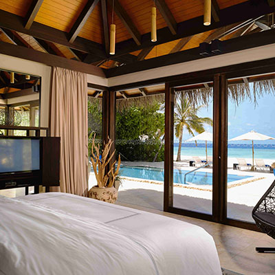 Velaa Private Island has been designed and curated with privacy and comfort as the guiding principles while allowing the Indian Ocean to take centre stage. At one with nature, each of the private retreats is built using local materials, combining contemporary flourishes with interiors designed for sensory exploration. Generous terraces and sultry gazebos are positioned to maximise shade, breeze, views and privacy, allowing for total immersion in nature.