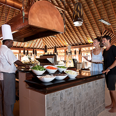 The resorts accommodation options provide the perfect space to relax after days filled with ocean adventures. Choose form the 194 rooms available each with their own natural island style, including 30 Jacuzzi Water Villas, 30 Jacuzzi Beach Villas, 111 Beach Villas and 23 Garden Rooms. All feature tropical décor, a king size bed, wood or tile floors, private porch with furniture, air-conditioning, overhead ceiling fan, sitting area, stocked minibar with refrigerator, complimentary tea or coffee or 2x house bottles water, IDD telephone, 32 inch flat screen cable TV, free WiFi, personal safe, partially open-air bathroom with double sinks, a rain shower, bath accessories, hair dryer, nightly turndown service, bathrobe, complimentary use of sunbeds and beach towels at the pool and beach. Electricity is 220VAC, 50HZ with standard UK socket-outlets.