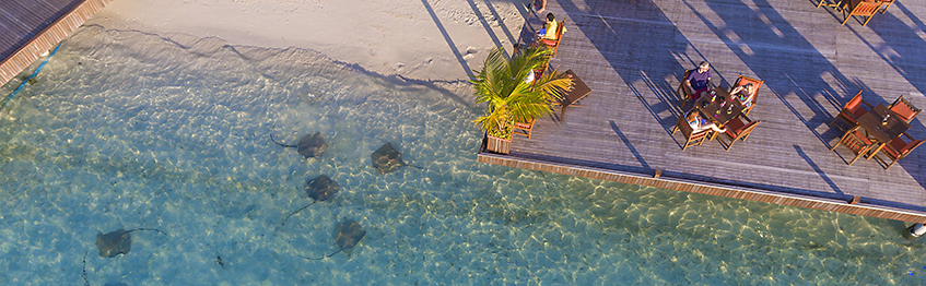 Vilu Reef is found on Meedhuffushi Island, a beautiful bite-sized jewel in the Maldives’ South Nilandhe Atoll. A spectacular 35-minute seaplane flight from Ibrahim Nasir International Airport, Their little slice of bliss is lush with coconut palms and fringed by colourful corals. They’ve got pristine, powder-fine sand, translucent turquoise waters and staff ready to help you 24/7 – the perfect ingredients for fun and relaxation.