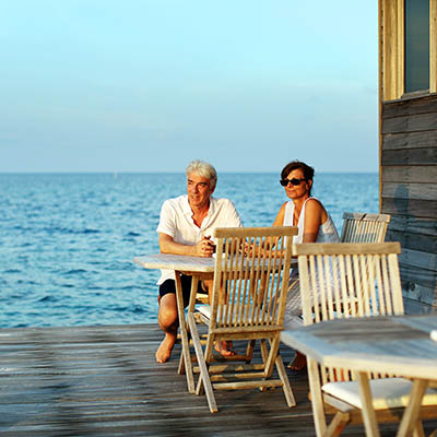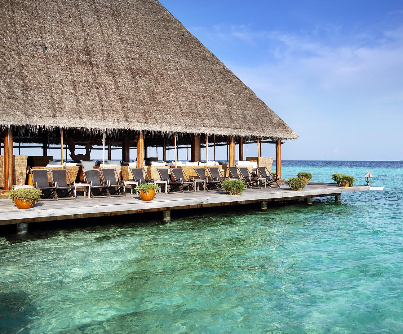 This is an elegant à la carte restaurant and bar, with an open air kitchen offering outstanding International dishes. On the terrace you can enjoy the Maldivian sunset a while sipping a cocktail from our extensive menu. The restaurant is located ahead of the wharf suspended above the splendid lagoon, with amazing sea views.