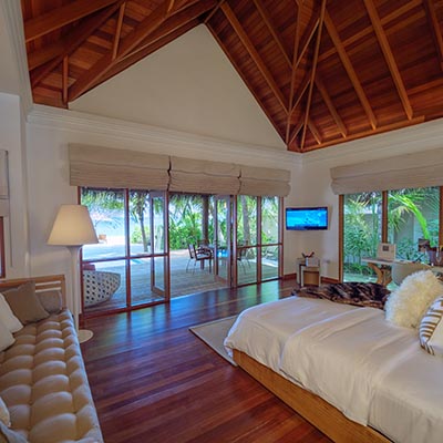Set in seclusion a further 200 metres beyond the lagoon and the Ocean Bungalows. Extravagant two-bedroom sunset-facing pavilions with dedicated Thakuru (butler) on call 24 hours.