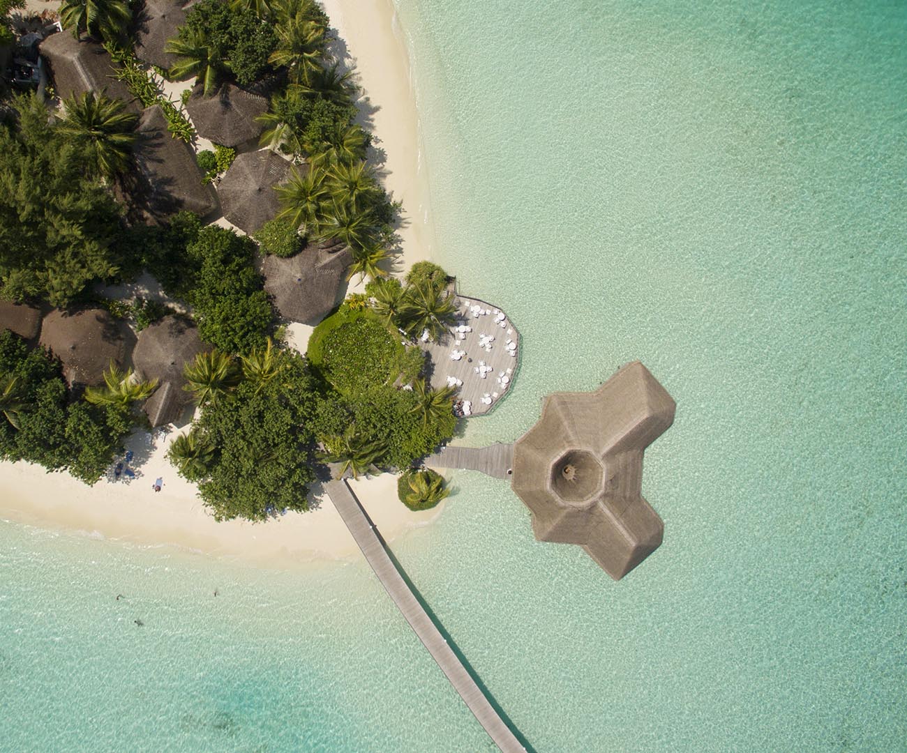 Floating in the turquoise lagoon next to the main restaurant is the island bar where guests may enjoy drinks and spend leisure time. Open from morning until the last guest leaves, the bar also invites guests for daily happy hour.