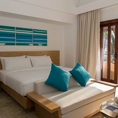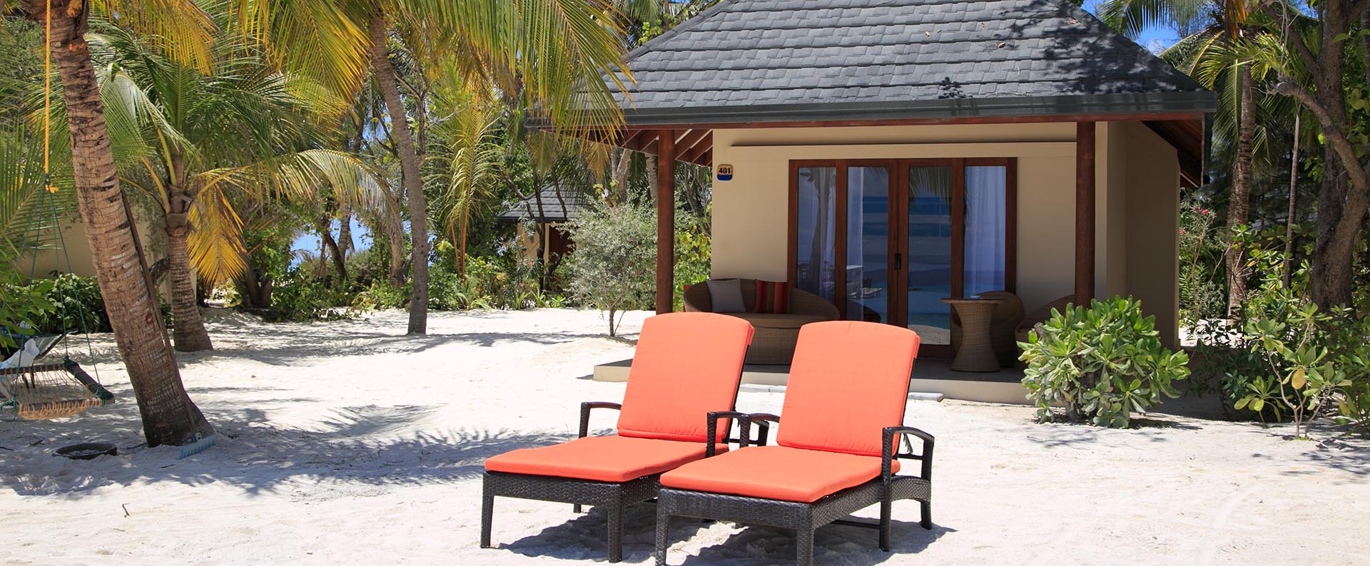 All rooms and villas are fresh and chic in design with bright, light décor. All rooms and villas have cable TV with USB port, individually controlled Air Conditioning units, writing table with drawer and chair, sofa and coffee table, complimentary tea-coffee, mini-fridge, luggage rack, in-room safe with power supply to safely charge electronic devices, IDD Telephones, free Wi-Fi, and open wardrobe with drawers. All rooms except the Water Villa, have partially open air bathrooms. The rooms and villas open out to a spacious verandah, deck or terrace depending on the type of room. This area is finished with out-door dining for two and, depending on the category, a large daybed or two sun lounges or daybed.